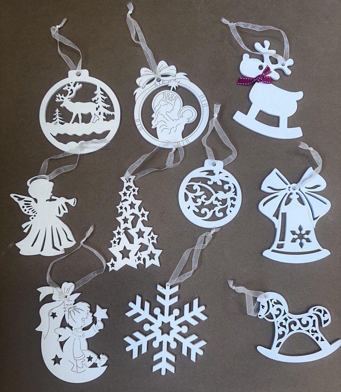 Include set de decorațiuni festive (10pcs decor MDF, beteala.)