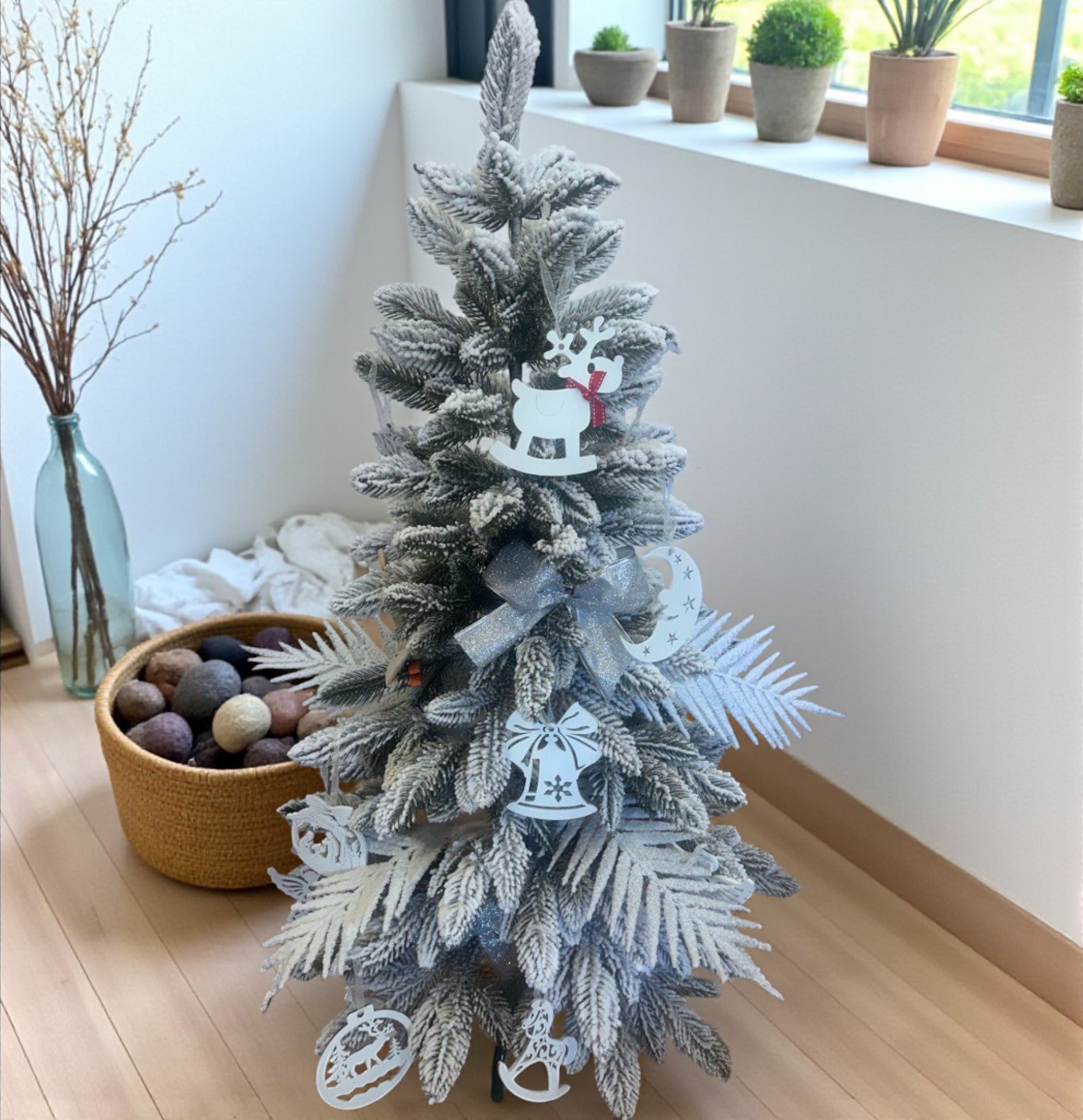 Brad Artificial Înzăpezit ARINA – 1M, cu Decorațiuni Incluse