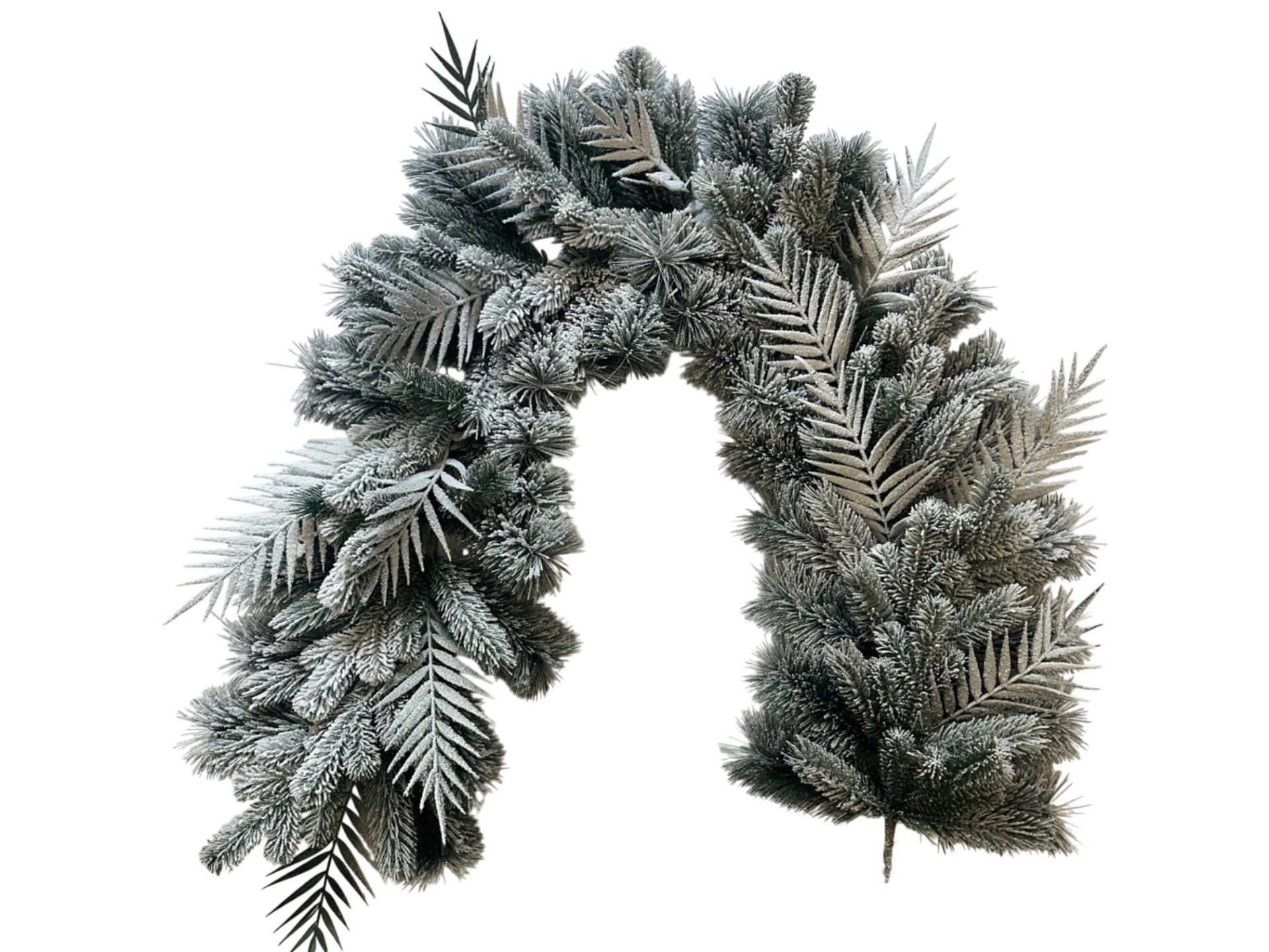 Inspirată din frumusețea bradului ALPIN, această ghirlandă înzăpezită de 190 cm aduce un plus de eleganță și naturalețe în orice decor de sărbători. Fabricată dintr-o combinație de crenguțe turnate din PE și ramuri din PVC, ghirlanda ALPIN se remarcă prin aspectul realist și efectul delicat de zăpadă artificială aplicată manual.