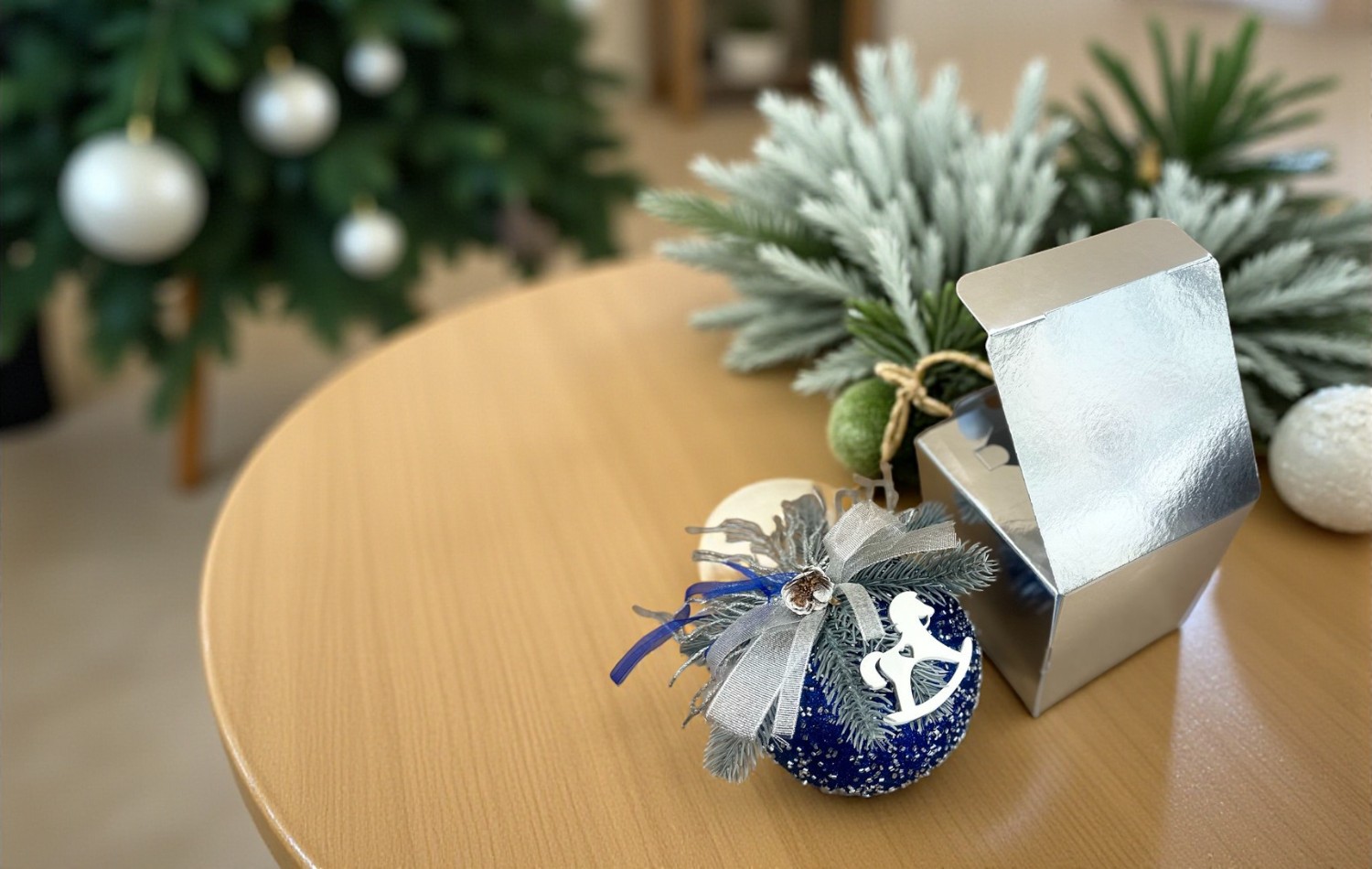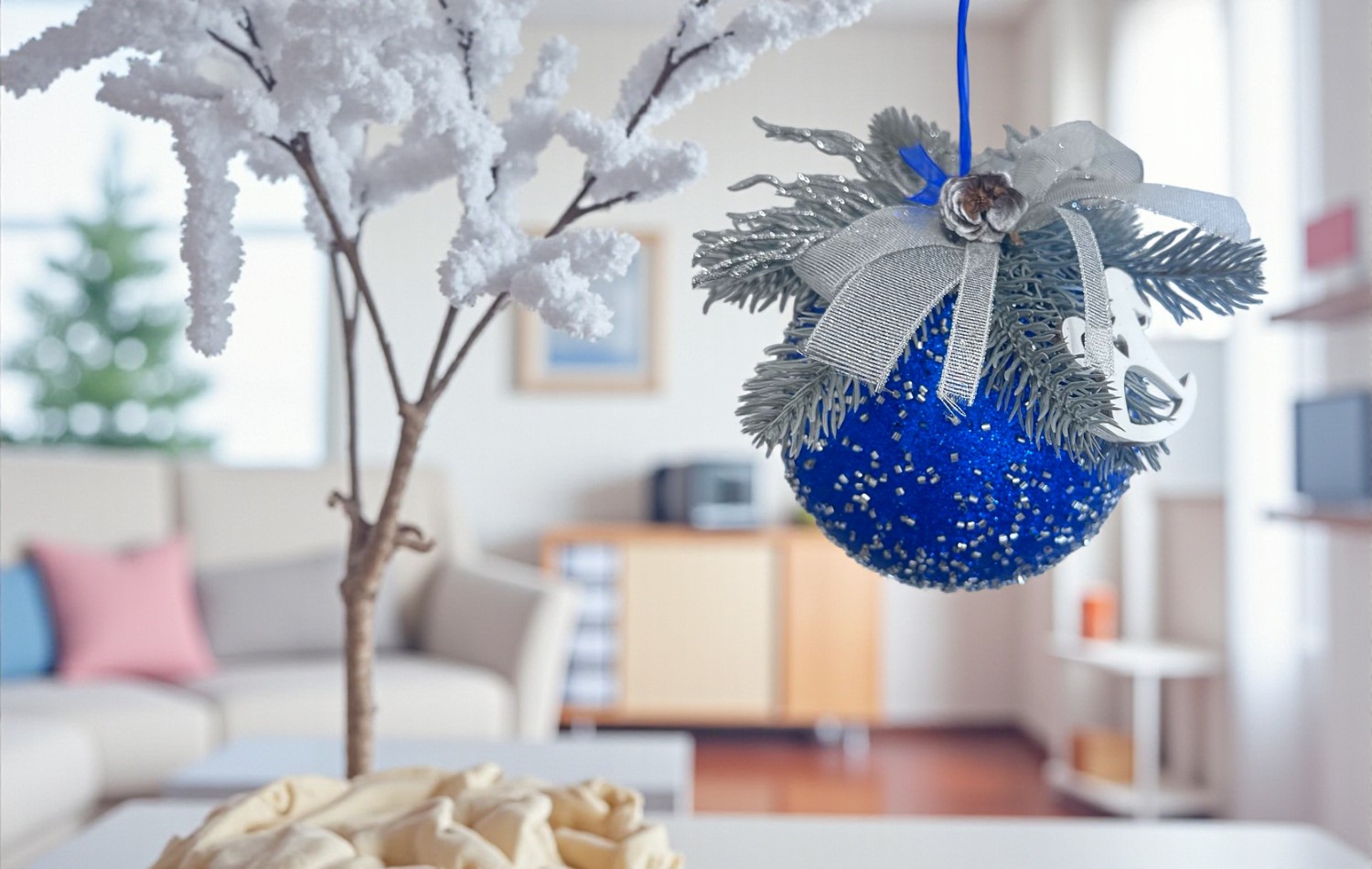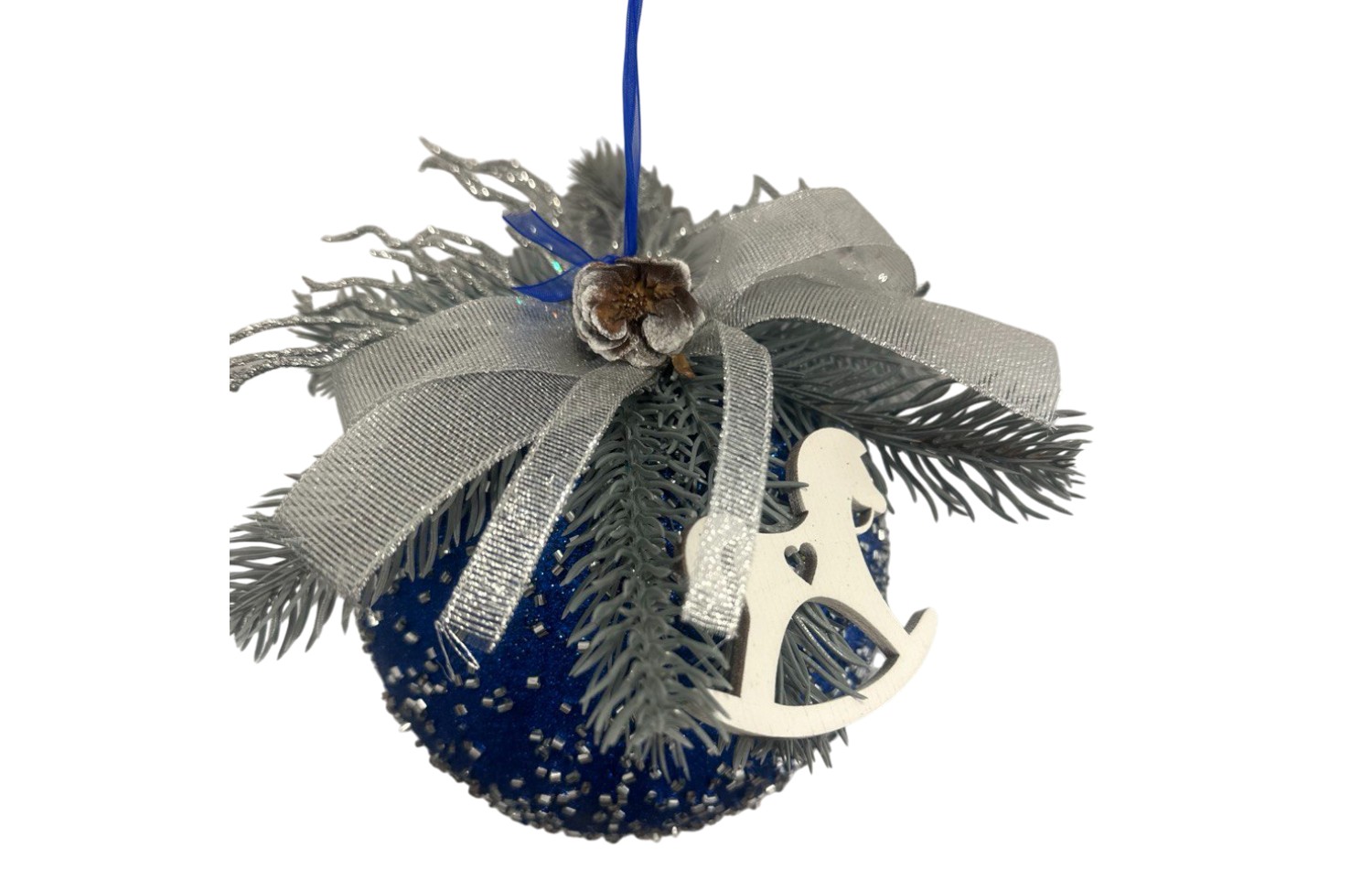 Globuri albastre argintii de Crăciun decorate – d15 cm