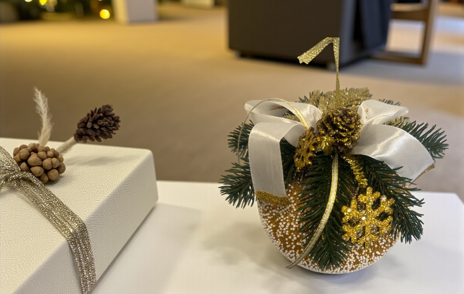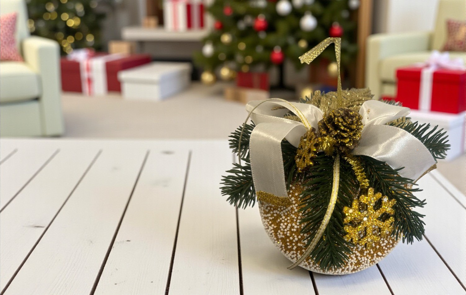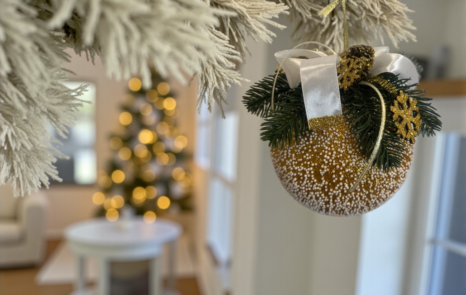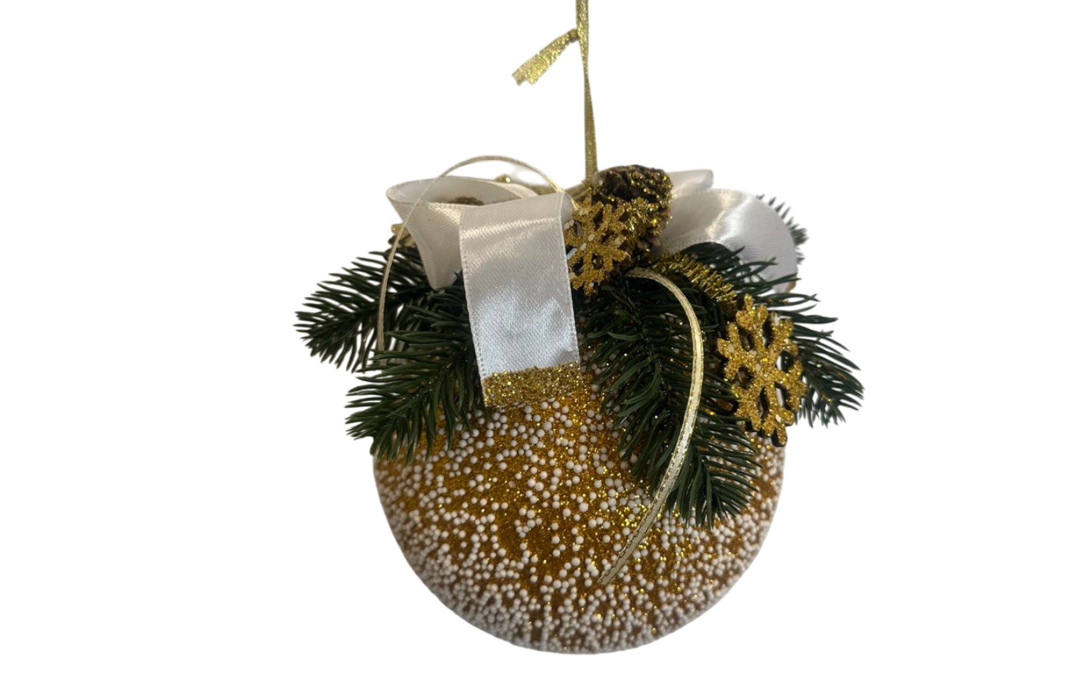 Globuri auriu /alb de Crăciun decorate – d15 cm